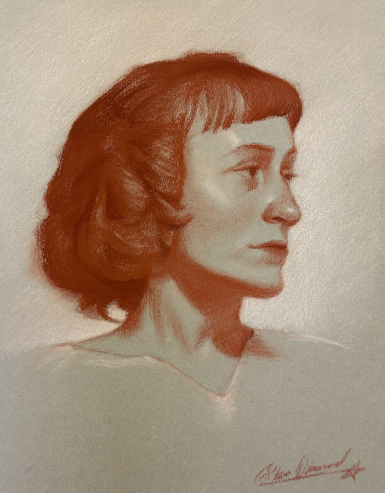 May 11th, 2024, approximately A4, Sanguine Chalk and Conté Crayon