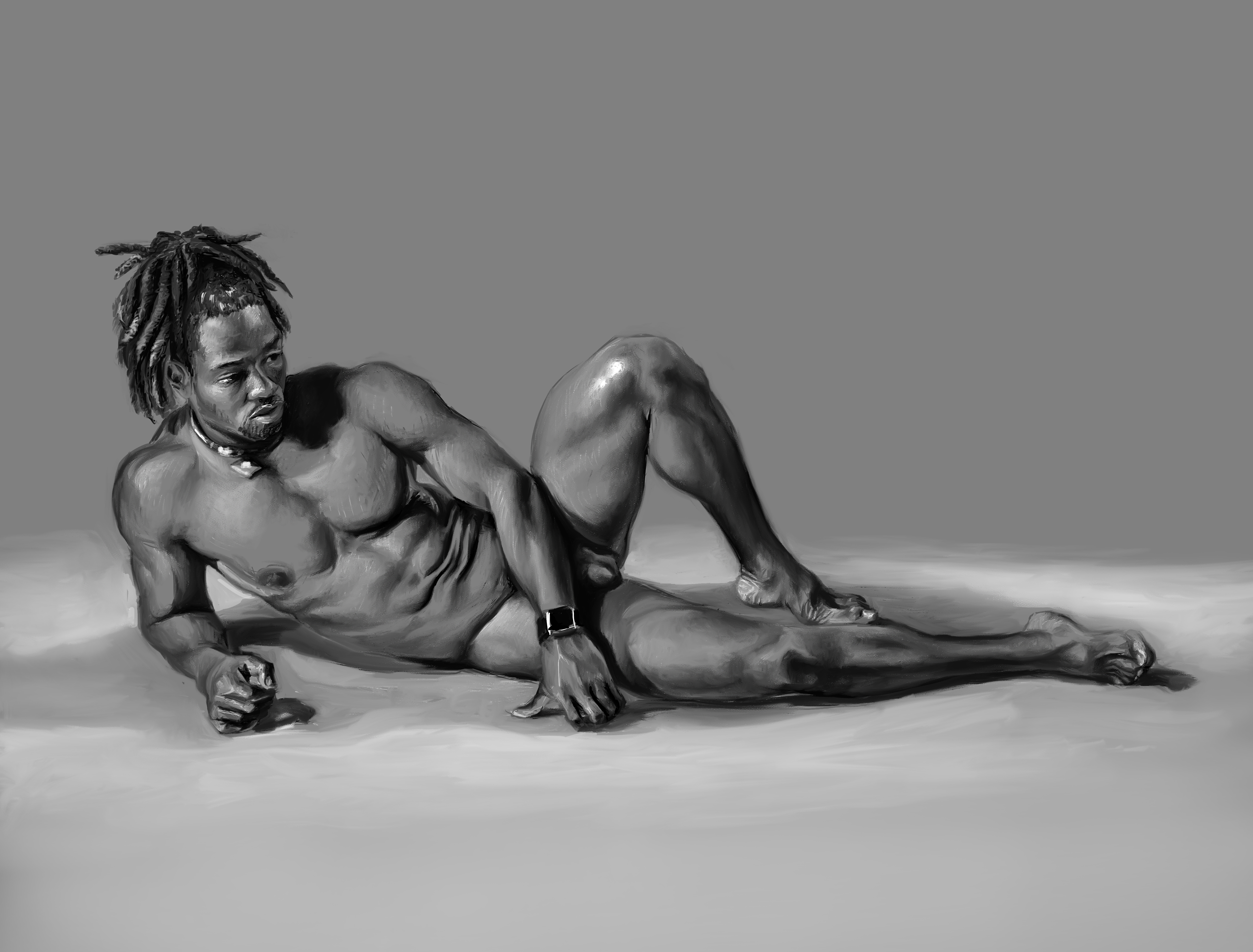 A digital sketch of a model named Anderson from a Croquis Cafe pose reference video.