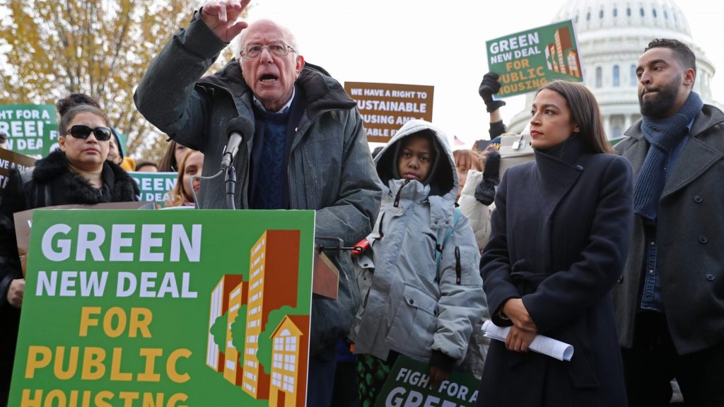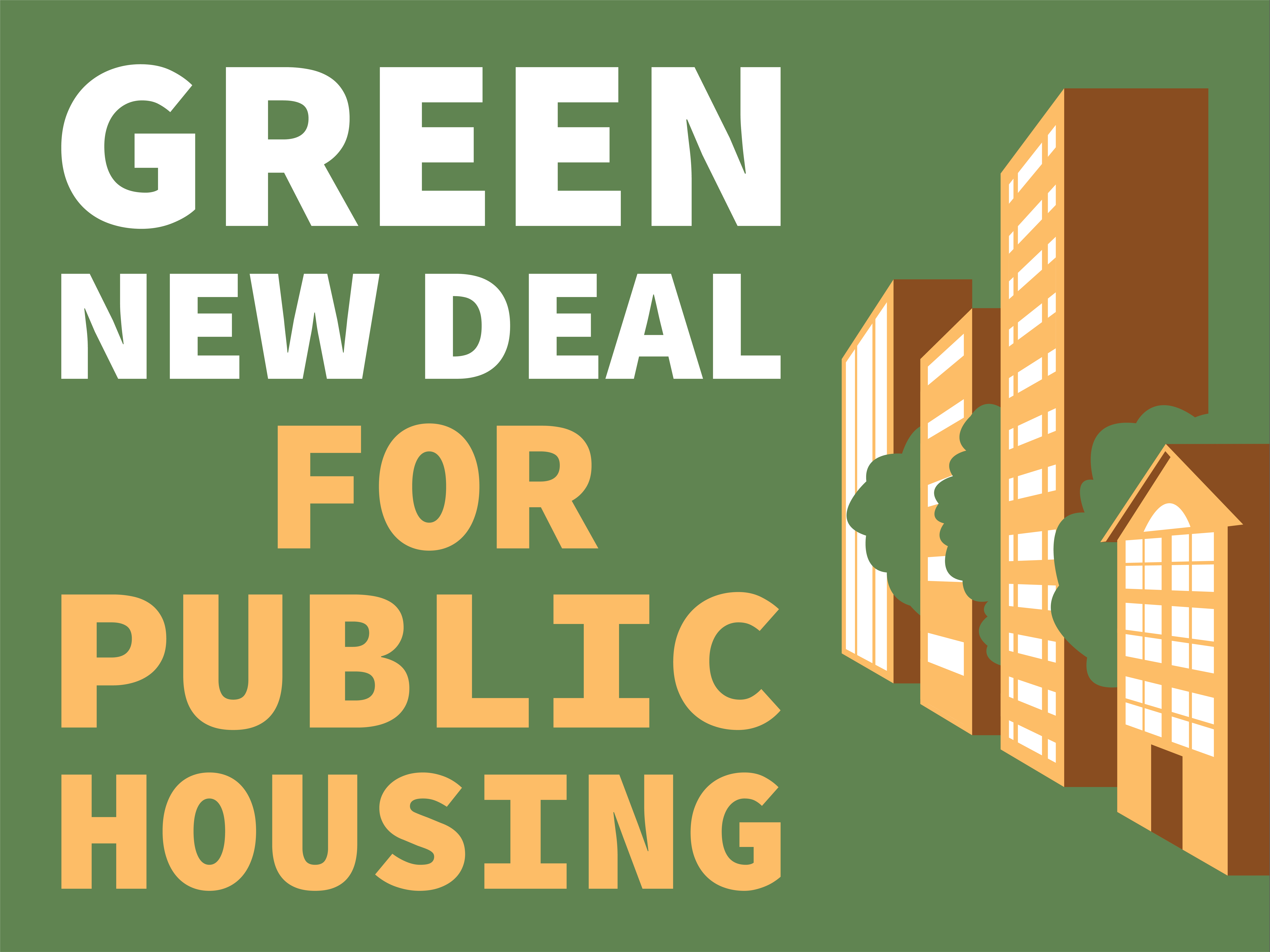 Handheld signs and podium sign designed for Alexandria Ocasio-Cortez and Bernie Sanders' launch of their Public Housing bill. Assigned to me through the Sunrise Movement.