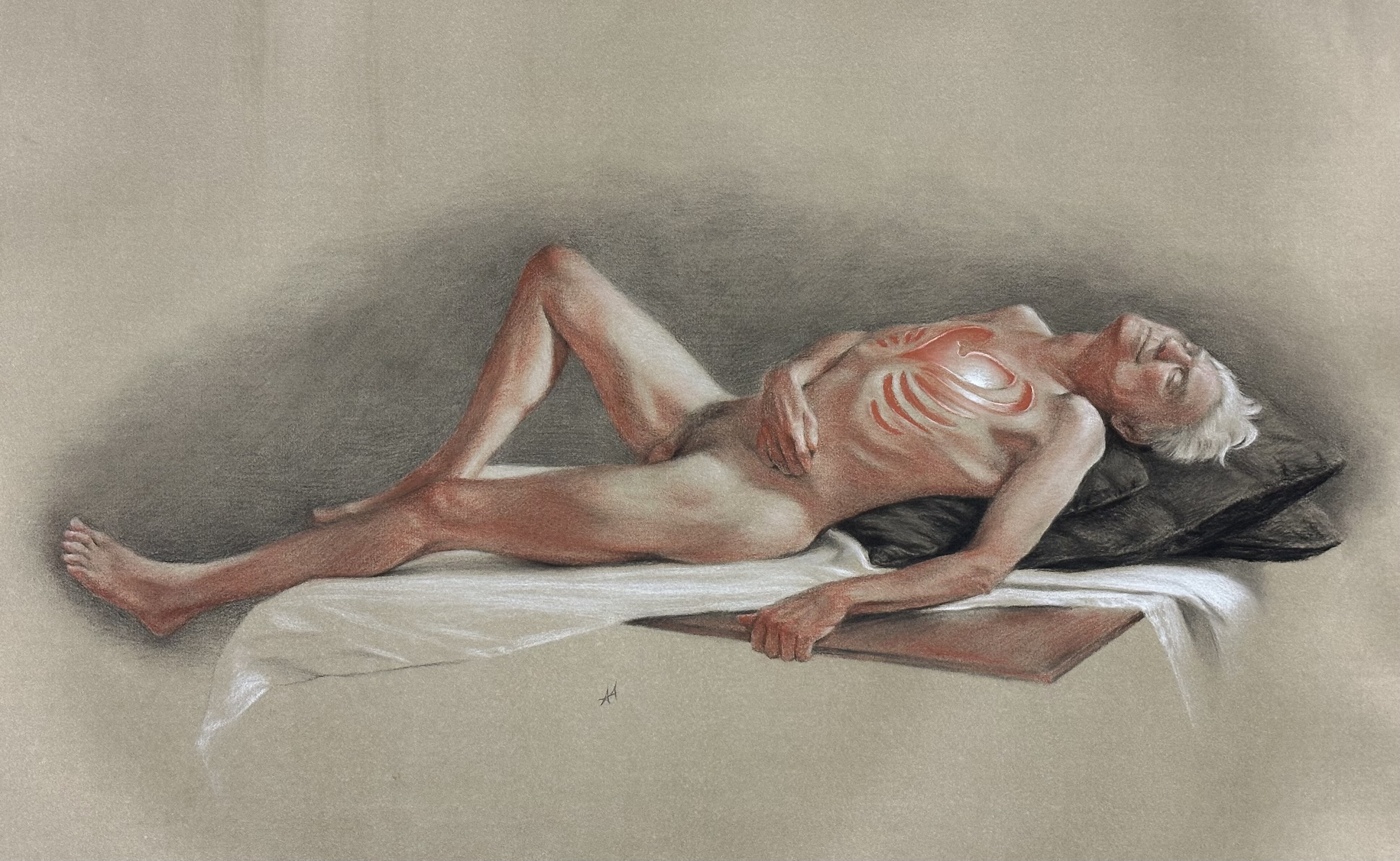 January 12th, 2026; 74x43cm; Charcoal, White Chalk, and Sanguine Chalk on Hand Toned Paper