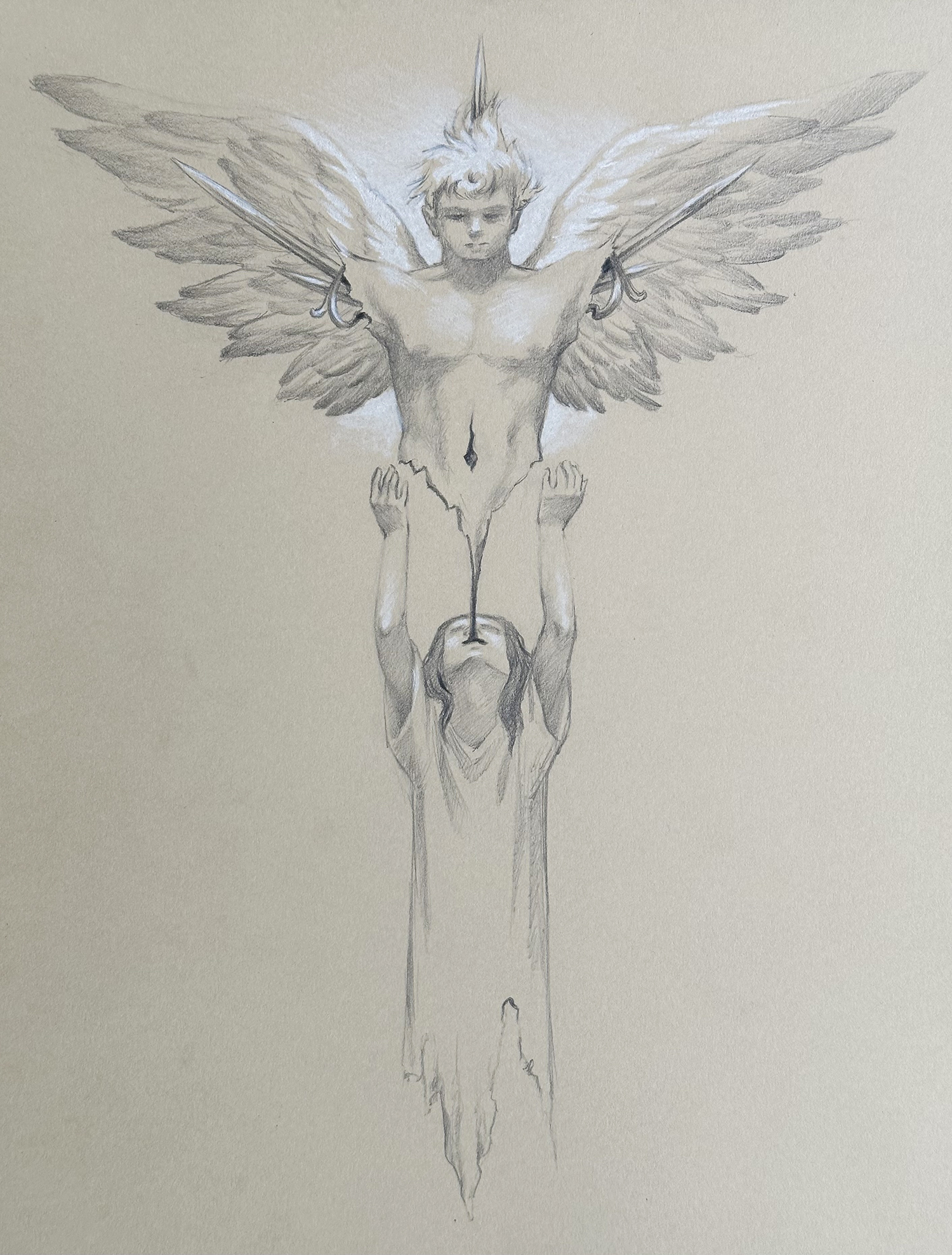 July 23rd, 2024, 8.5x11", Graphite and White Chalk on Toned Paper