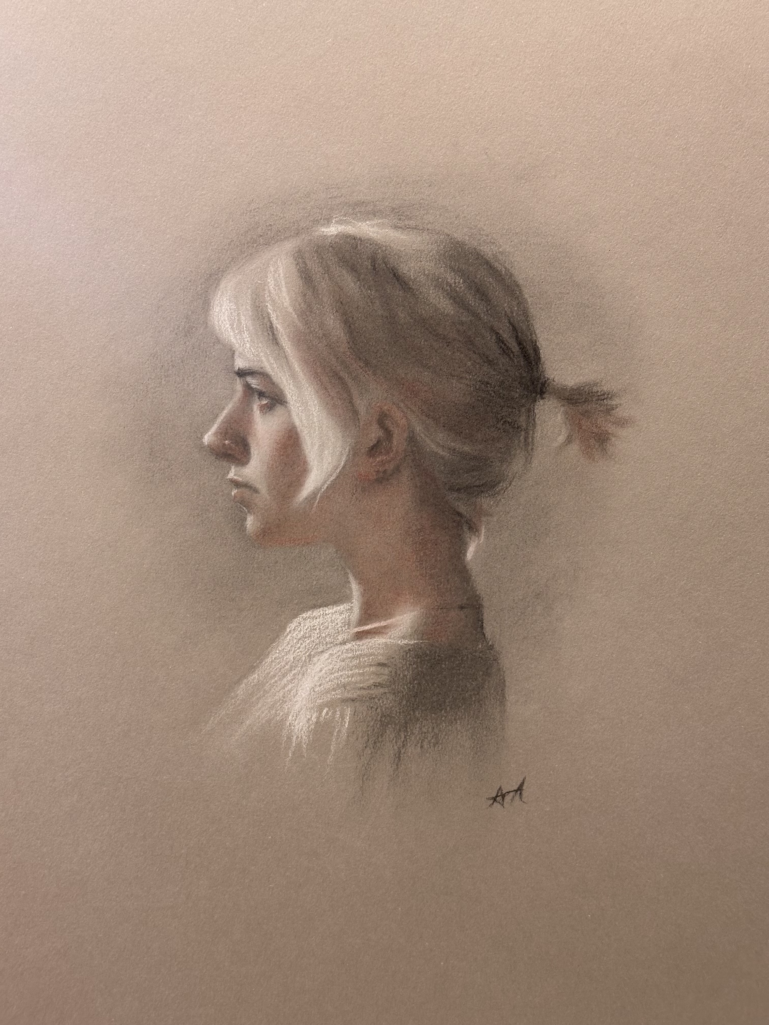 October 18th, 2025; A3 Size; Charcoal, White Chalk, and Sanguine Chalk on Toned Paper