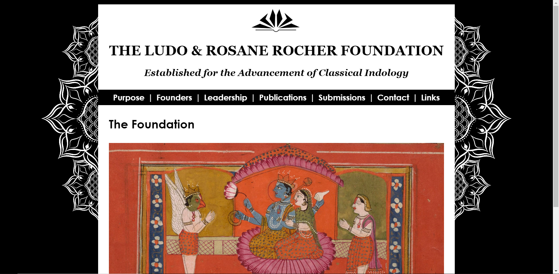 A website and logo designed for The Ludo & Rosane Rocher Foundation, an organization dedicated to funding publications related to classical Indology.