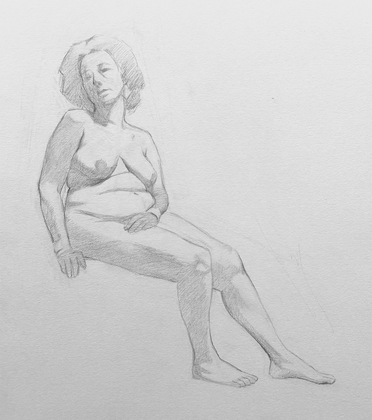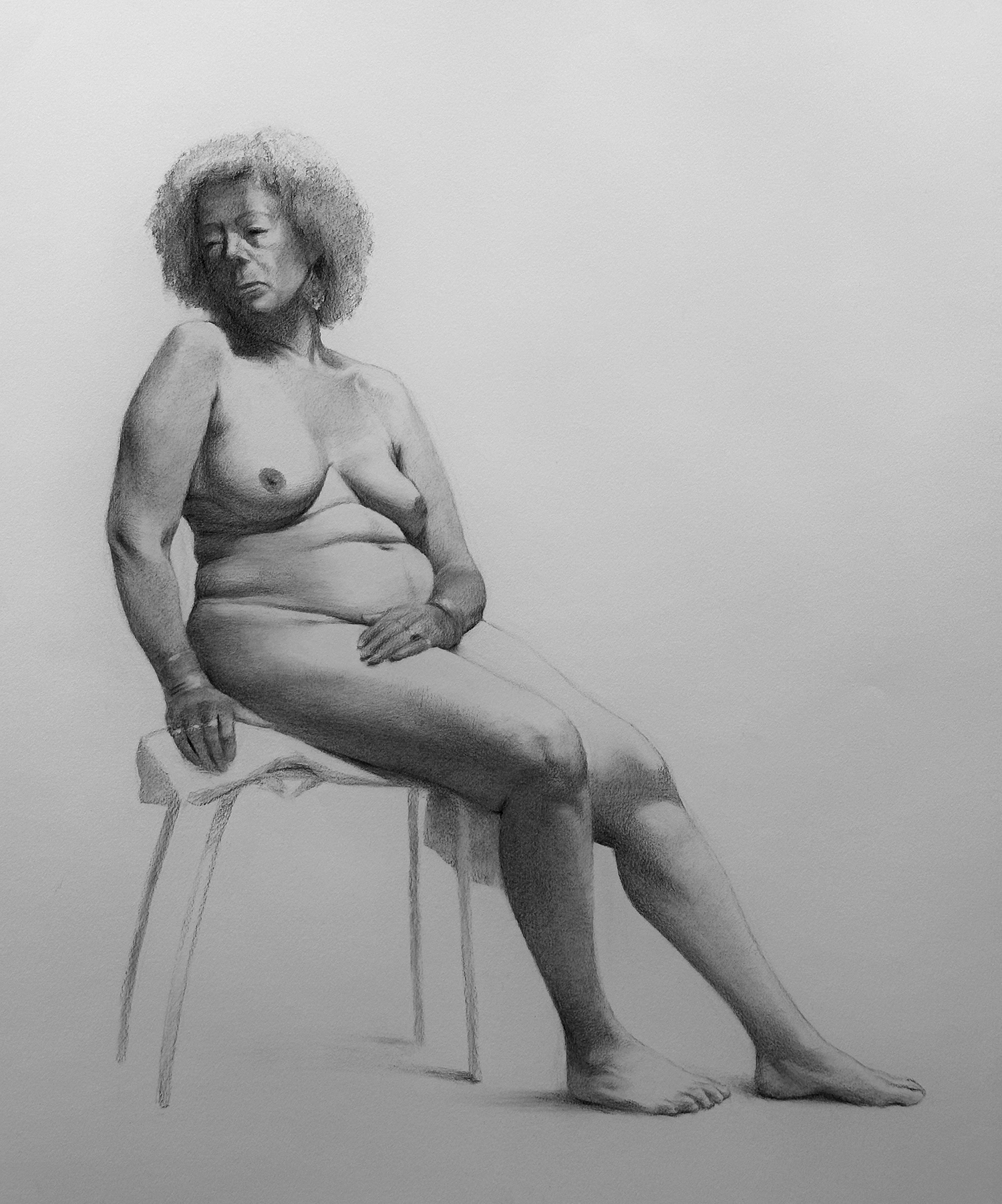 Drawn from life. The first image shows the final drawing in charcoal. The second image is a preparatory sketch in graphite, on A4 paper, created over the course of a three hour session.