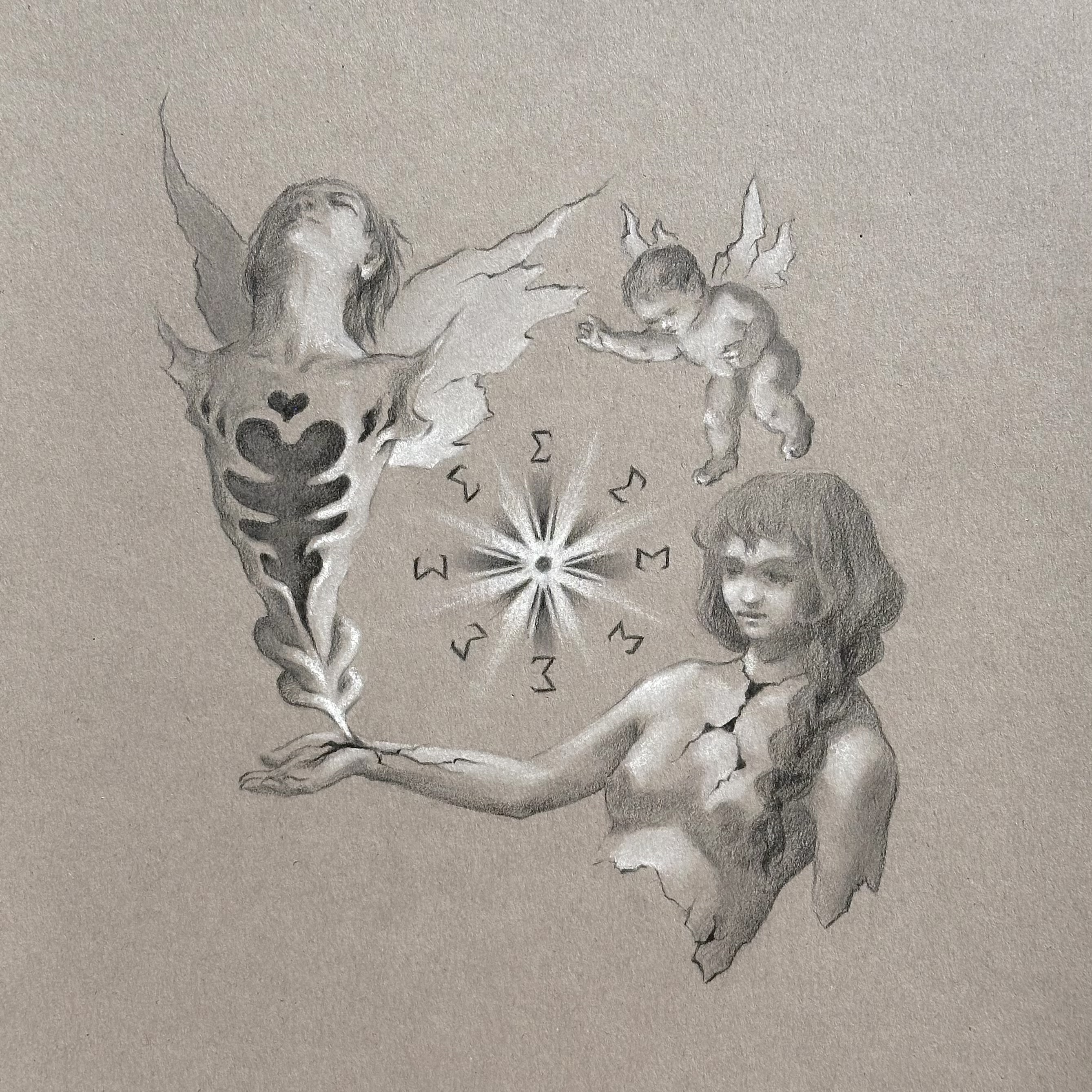 In uniting to form a family, parents sacrifice a portion of their bodies, lives, and individuality for the sake of the next generation. This self-destruction is physical for the one who gives birth, and less physical for the one who does not. Pieces of her porcelain flesh have been given to the man and child as wings. To conceive and to co-parent the child with the father, she must accept and uplift a man even in his moments of hollowness, even in the fact that he will never fully understand what has happened to her body. The child points to her father, saying, "you must embrace this man to make me exist." And she does. The light and the dark, the empathy and the detachment, are all summed together to form the new creature and the family unit.
