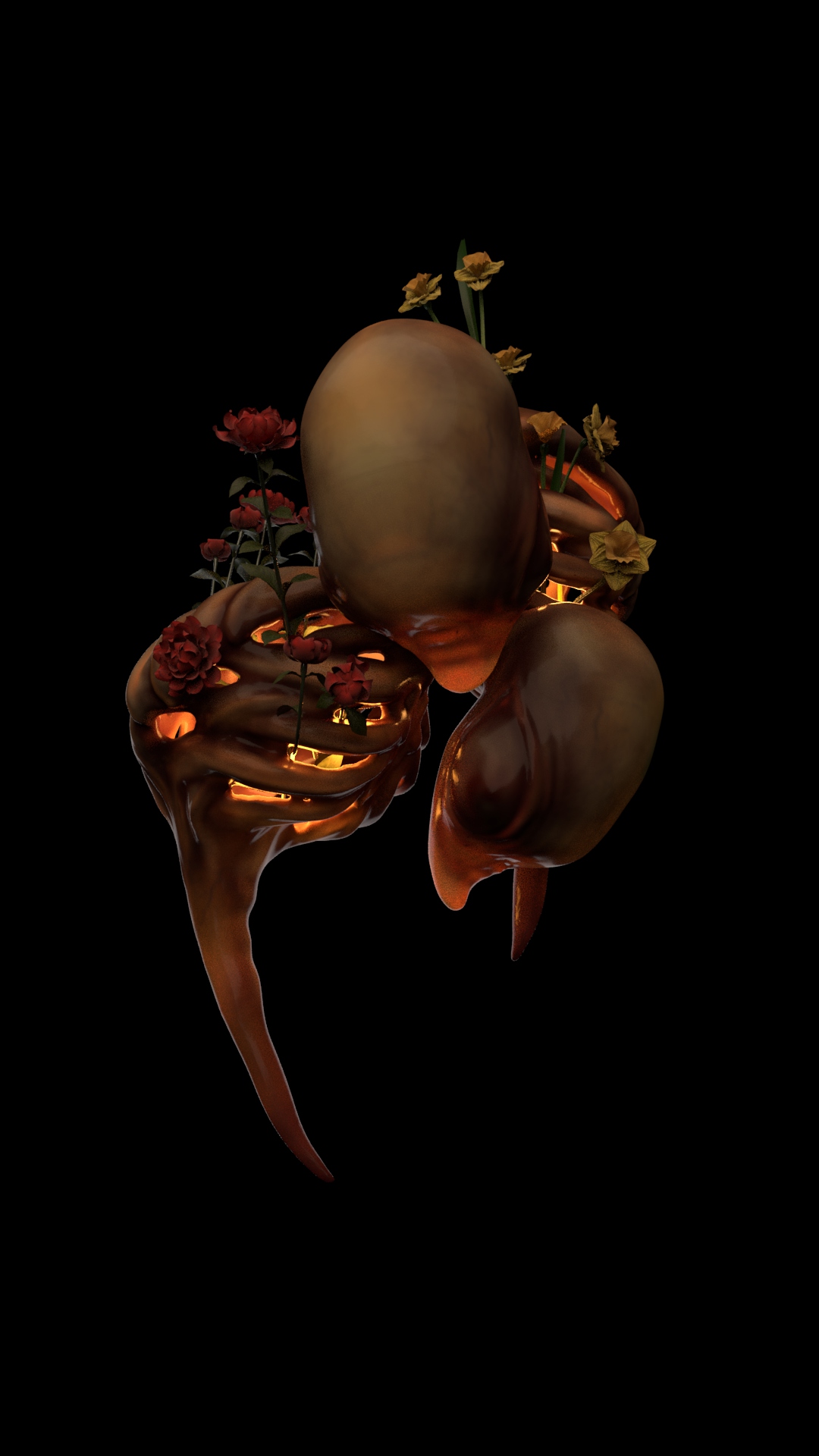 Two underwater creatures who never need to grow or move because they absorb nutrients through their exposed organs, communicate telepathically, and share a symbiotic relationship with the flowers that grow in their rib cages.